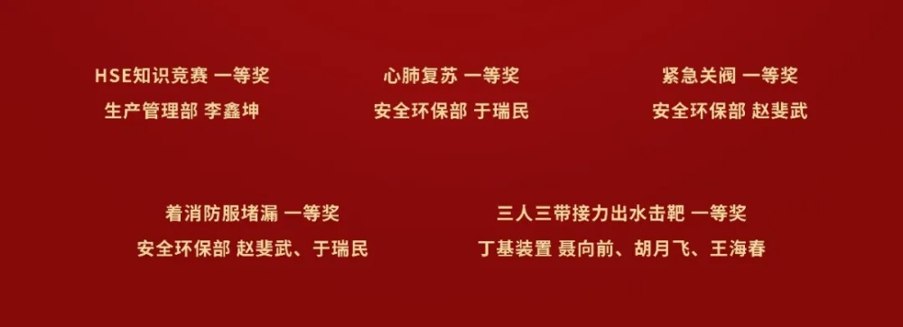應急技能比武第一名名單 經過激烈的角逐,生產管理部李鑫坤、安全環(huán)保部于瑞民等人獲得各項比賽一等獎。 此次應急技能比武,檢驗了員工的消防器材使用技能、應急處置能力和協調作戰(zhàn)能力,為各部門員工創(chuàng)造了一個切磋技能、交流學習、共同提高的平臺。通過此次技能比武,對加強公司應急管理工作,提升員工應急救援處置能力,保障安全生產起到積極促進作用。 |