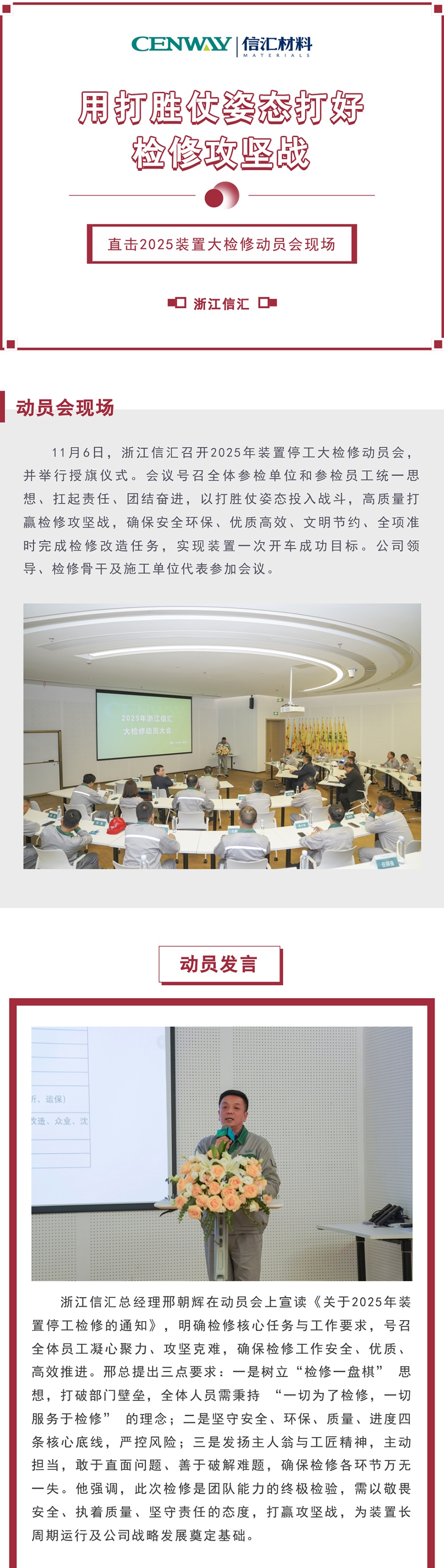 用打勝仗姿態打好檢修攻堅戰 | 浙江信匯召開動員會吹響大檢修號角 2025-11-07 17:28:05 浙江信匯新材料股份有限公司 瀏覽次數 514 上一條沒有了 下一條浙江信匯7萬噸丁基橡膠系列產品擴建項目環評信息公示